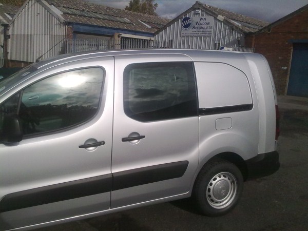 This bonded front fixed side window fits the nearside (left) panel in the side loading door of Citroën Berlingo models from 2009 to 2019. Featuring privacy glass with 20% light transmission, it adds a sleek, tinted look while maintaining privacy.
